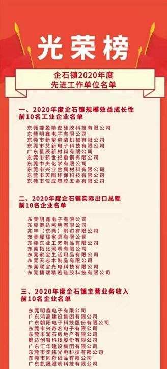 3月3日上午,企石鎮(zhèn)召開2020年度工作總結(jié)大會(huì),發(fā)布了《企石鎮(zhèn)2020年度先進(jìn)工作單位名單》,包括《2020 年度企石鎮(zhèn)規(guī)模效益成長(zhǎng)性前10名工業(yè)企業(yè)名單》《2020 年度企石鎮(zhèn)實(shí)際出口總額前10名企業(yè)名單》《2020 年度企石鎮(zhèn)主營(yíng)業(yè)務(wù)收入前10名企業(yè)名單》等10份名單。會(huì)議對(duì)2020年度企石鎮(zhèn)主營(yíng)業(yè)務(wù)收入前10名企業(yè)進(jìn)行了現(xiàn)場(chǎng)表彰。新望公司有幸入列:企石鎮(zhèn)2020年度規(guī)模效益成長(zhǎng)性10名