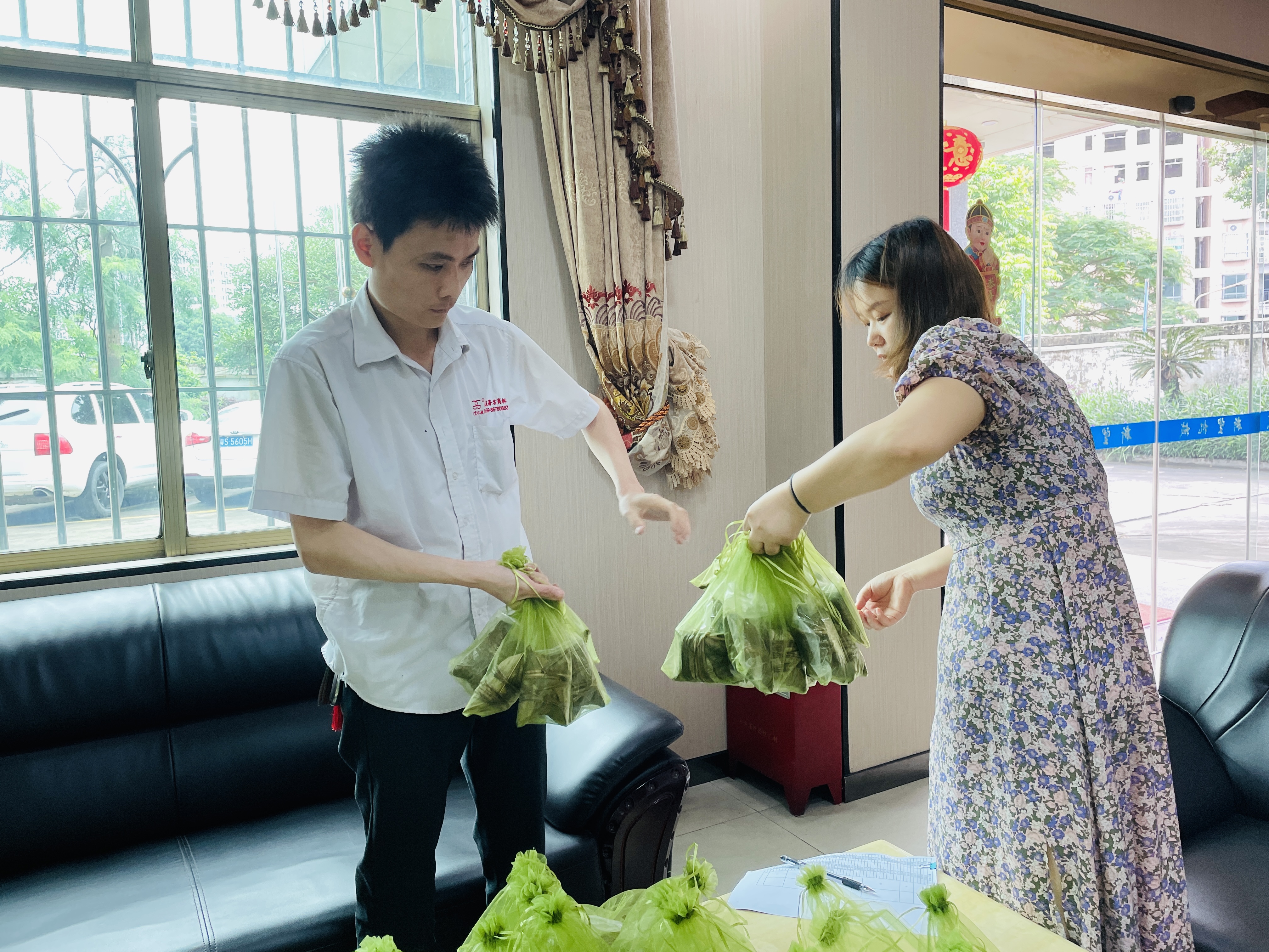 在端午節(jié)這一天新望大道為員工準備了美味的粽子。我們希望通過這份小小的關愛,表達對員工的感謝和祝福。愿每一位員工在端午節(jié)假期中,健康安康,快樂幸福!